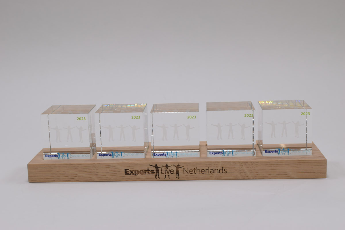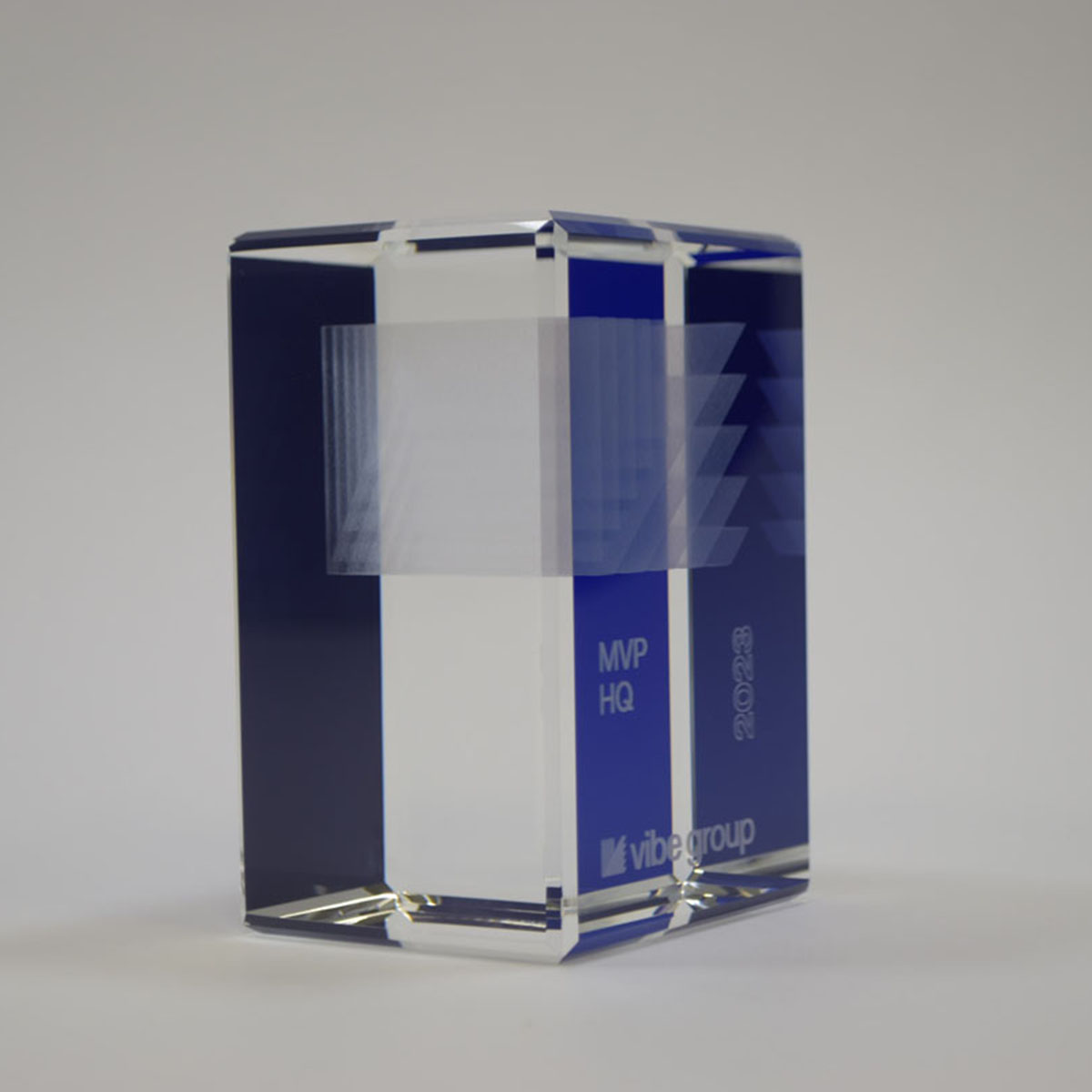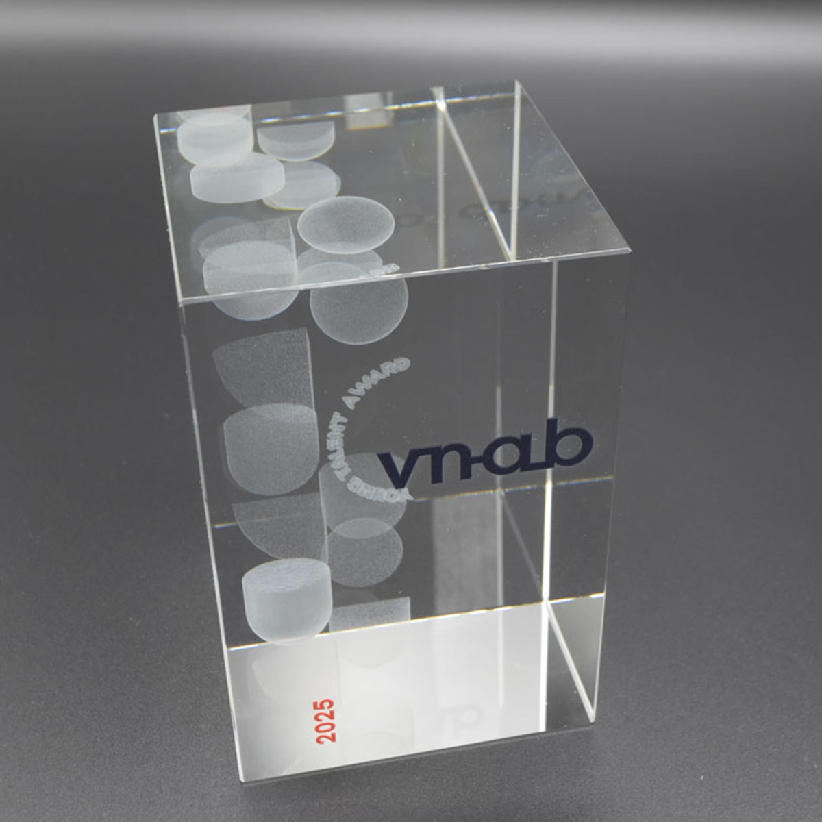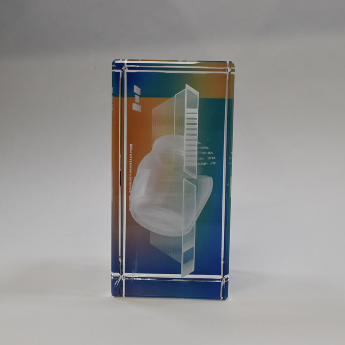 Met 3D-hologramgravure lijkt je ontwerp letterlijk in het glas te zweven. Deze techniek geeft diepte en maakt van elke award een blikvanger. Zelfs een foto graveren op glas wordt met deze techniek een spectaculair 3D-effect.